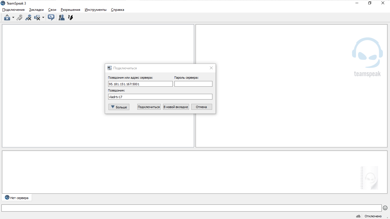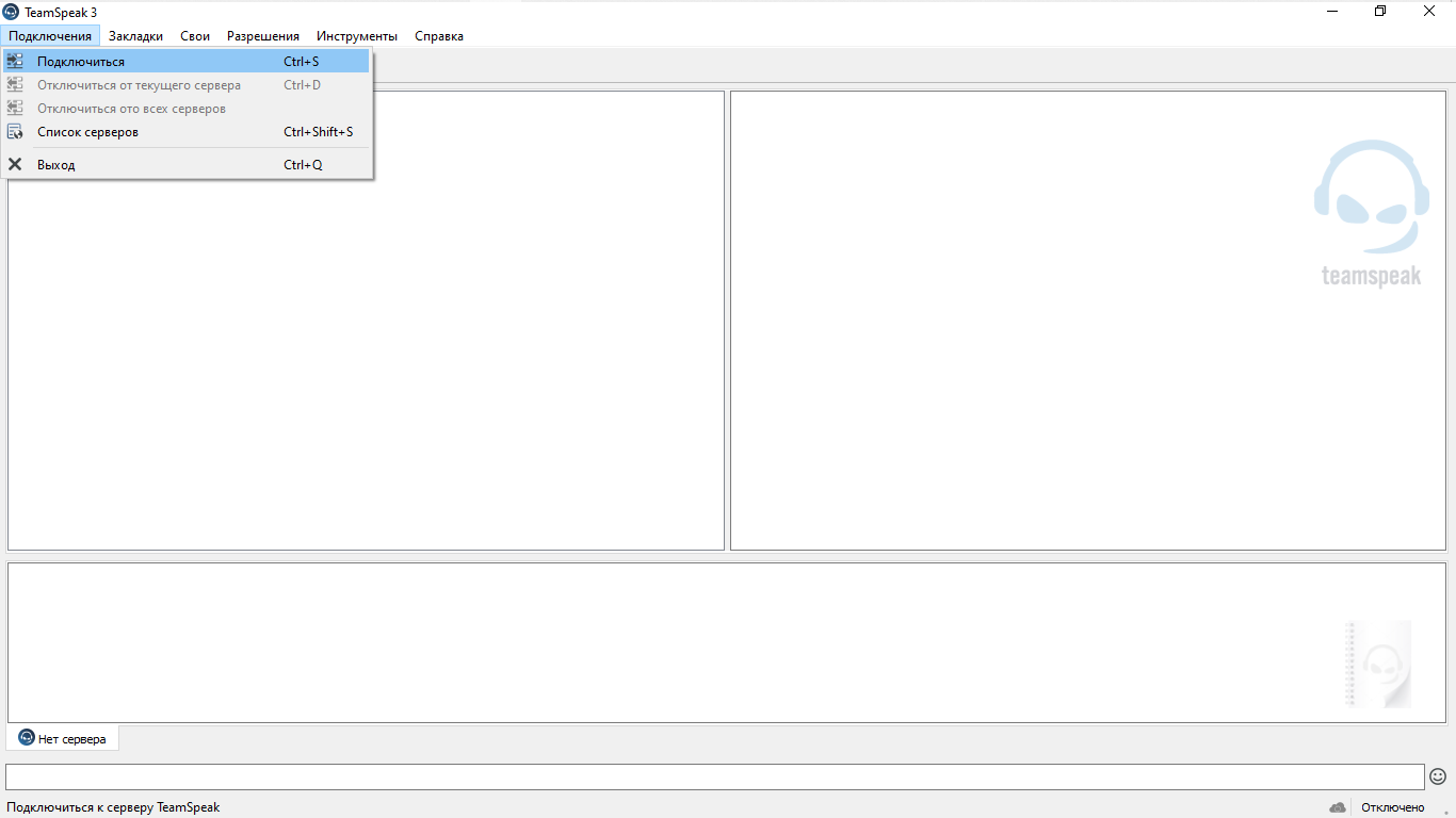 4.1. Теперь у вас все установлено и все настроено. Чтобы начать общаться в голосовом чате, выберите "Подключиться" в меню "Подключение".