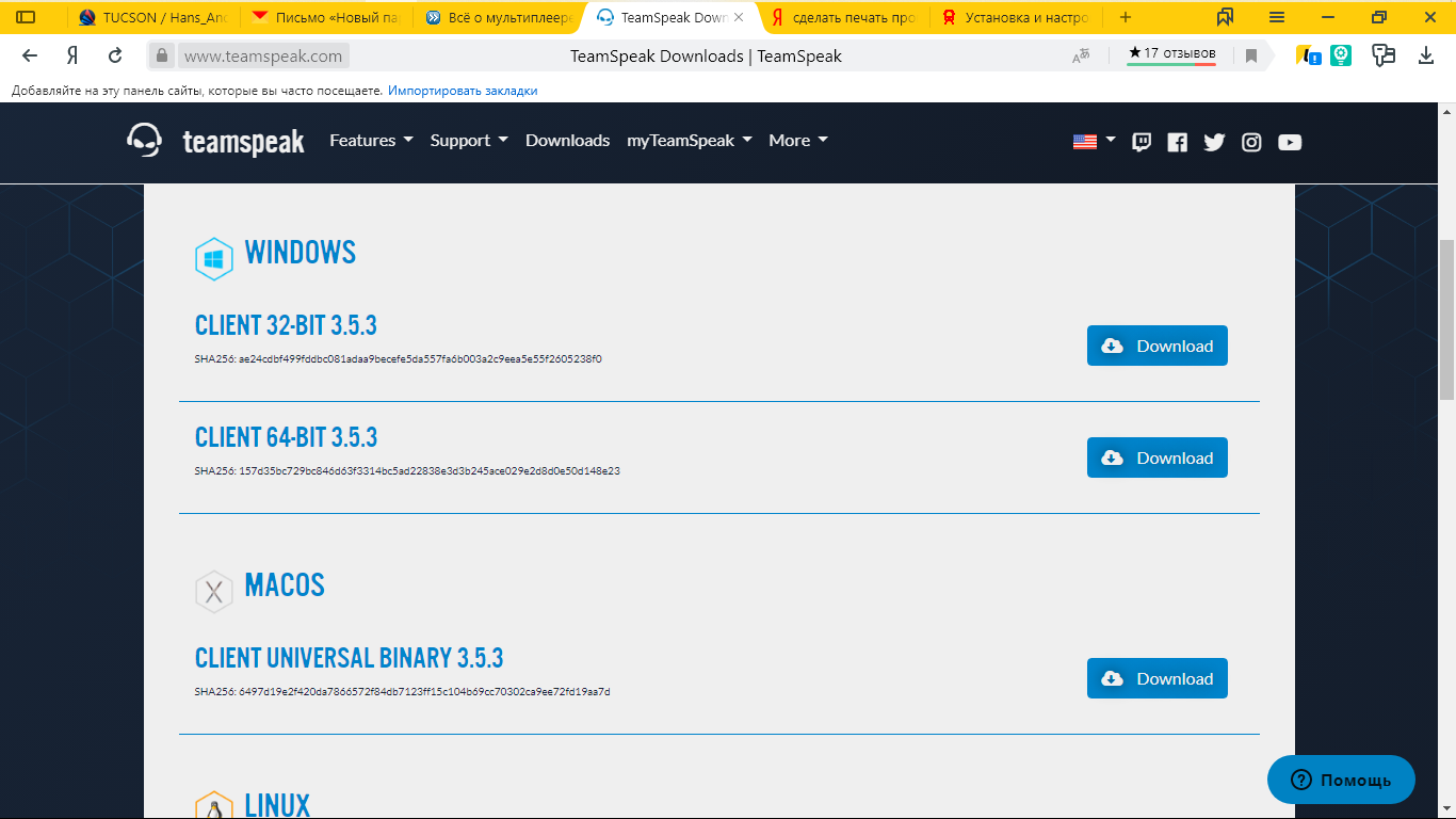 Для этого необходимо перейти по следующей ссылке: http://www.teamspeak.com/?page=downloads и нажать кнопку Download.